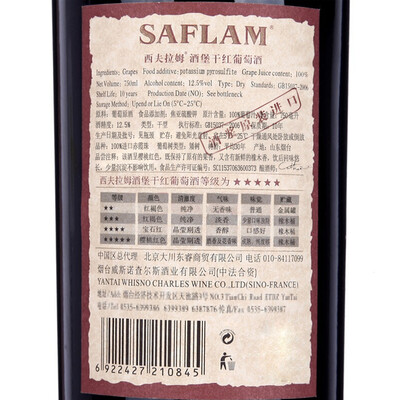 采用赤霞珠葡萄干酿而成,拥有浓郁的香气,口感单宁醇厚。醒酒时间为15-30分钟,简易搭配肉类饮用口感更佳。