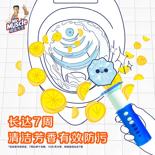 威猛先生的这款洁厕剂,添加了柠檬香成分,在去除异味的同时,可持久散发淡淡清香,令卫生间的空气更自然。