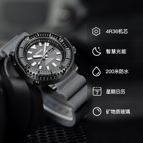 选用硅胶材质制作表带,轻盈贴肤,弯曲性好,耐用抗撕裂。结合200米潜水级别的防水性能,很好的保护手表,不进水更耐用。