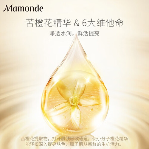 融合六大鲜活维他命,可以赋予肌肤净透弹润。焕发不一样的生机与活力。萃取到苦橙花精华,具有优秀的补水功效。