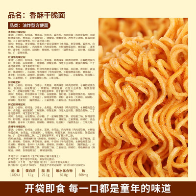 这款干脆面甄选多种优质材料,打造五种独特口味的干脆面,搭配便携独立包装,开袋即食,满满童年味道。