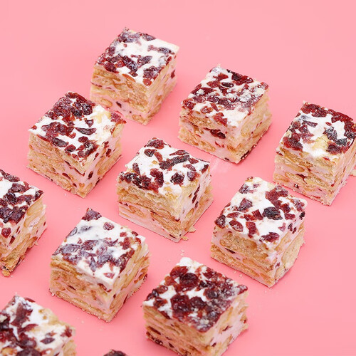 甄选了天然的小麦粉和植物油为原材料,其中还放入了蔓越莓果肉,吃起来很有嚼劲。