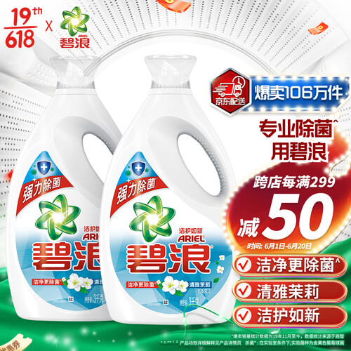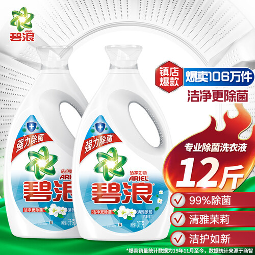 针对常见的酱油、蚝油等蛋白质类污渍,这款洗衣液中的智能生物酶成分,能主动识别及分解。并且还能除异味,持久散发茉莉清香。