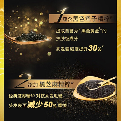 蕴含黑色鱼子精粹,可补充发质营养,使其变得黑亮柔顺。全新奢养配方,提升秀发30%光泽度,让你自信出街。