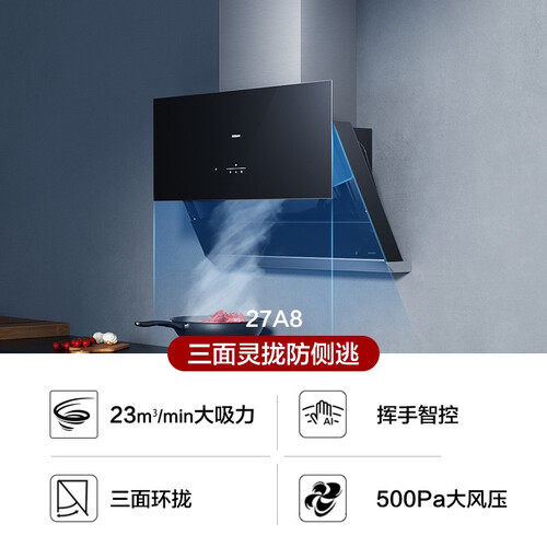 三面环拢终结油烟,烹饪过程中环拢吸烟让油烟无处可逃。挥手智控更方便,挥挥手就能使用的油烟机,家里老人也会用。