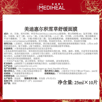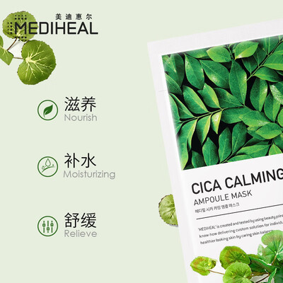 主打积雪草提取物,帮助水分吸收,深入肌底滋润,持久补水保湿。每片面膜含有1安瓶营养液,直接作用肌底,修护维稳,赶走泛红。