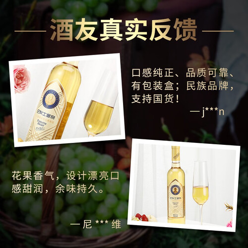 精选张裕葡萄园的贵人香、威代尔为主要原料,采取特殊工艺精心酿制而成,具有愉悦浓郁的花果,口感甜润。