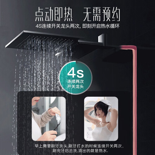 搭载ASP主动安防系统,具有火路、水路、电路、气路等四种保护功能,确保安全沐浴。内置直流变频水泵,快速抽回冷水并加热。