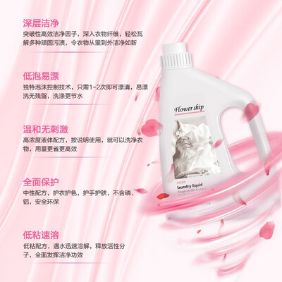 洁净因子深入衣物纤维,去污力强易漂洗,玫瑰植物提取精华,护色衣物持久留香。