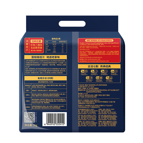 宽面条,压花薄边,更容易煮熟,让美味不再需要更多等待。严格遵守国家对于食品安全的检测要求,从源头到包装,更放心。