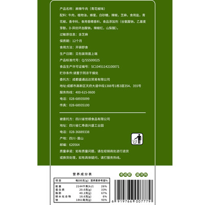 老成都深巷子的味道,正宗好滋味。无大豆蛋白的添加,牛肉本味跟青花椒香料的结合,香麻淋漓,肉香浓郁。美味挡不住。