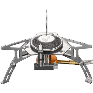 炉头旁附有电子点火器,方便使用。多向可折叠支架,方便收耐。