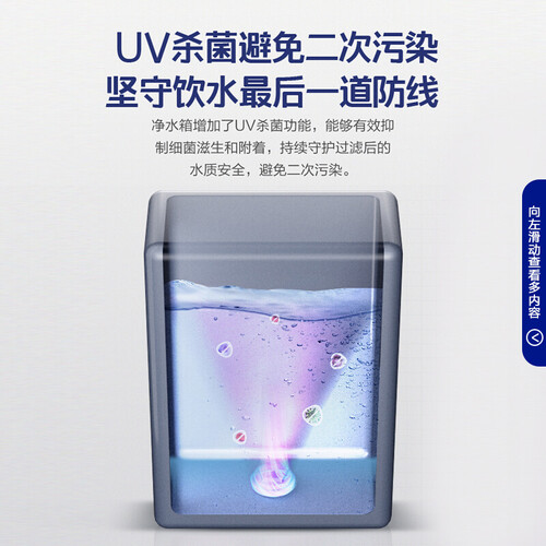内部添加了UV杀菌功能,减少细菌的滋生,保证家人的饮水安全。实时TDS水质监测加持,健康状况清晰可见。