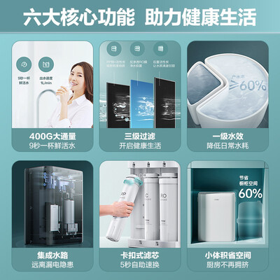 内置四重滤芯,将水层层净化,过滤多种有害杂质,保护健康生活。采用无罐设计,支持400G健康直饮,健康轻松收获。