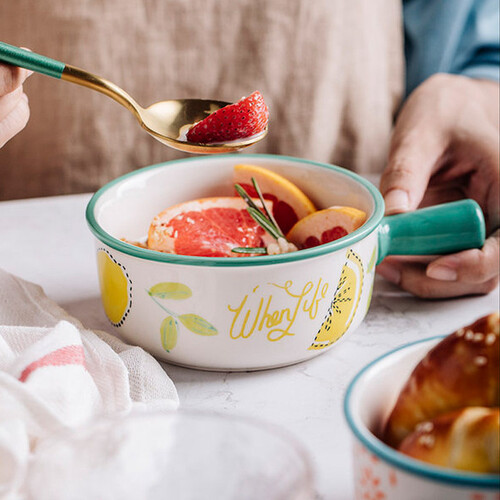 采用小巧的把手提拉比较的方便,高温也不容易掉色,持久保持新鲜美观。搭配手绘的花样进行装饰,看起来感觉更时尚。