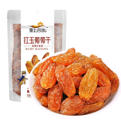新疆吐鲁番原产葡萄,经过多道工序制作而成,口感新美香甜。葡萄干果肉质地柔软,呈紫黑色,晶莹欲滴更诱人。