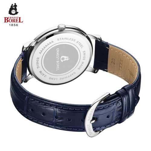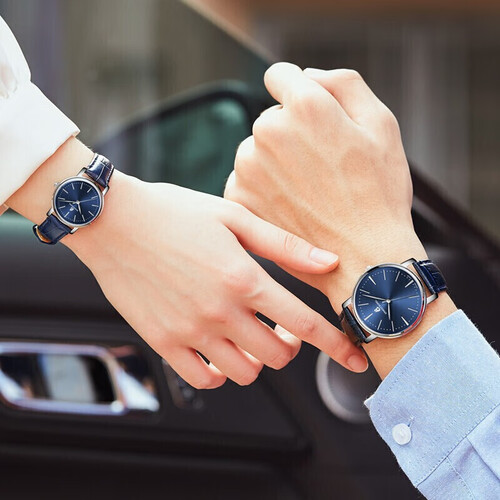 深邃蓝调表盘,简约浪漫,典雅迷人。高透光表镜,透光率佳,滴水成珠,视感舒适。纹理表冠,调时便捷。