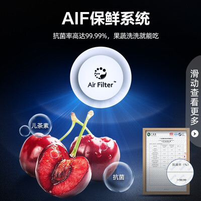 设有多维空间,不同食材可独立存储,防止食材互相串味。搭载AIF保鲜系统,有效抗菌,呵护家人饮食健康。