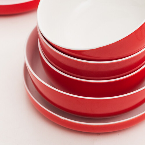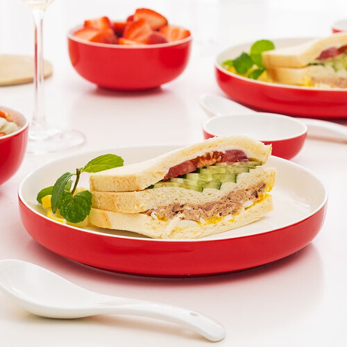 采用釉下彩工艺,将彩釉牢牢锁于釉层下,接触食物健康放心;玻璃质层手感细腻如玉,加厚的碗盘表面烫手,底部细腻打磨贴心防滑。