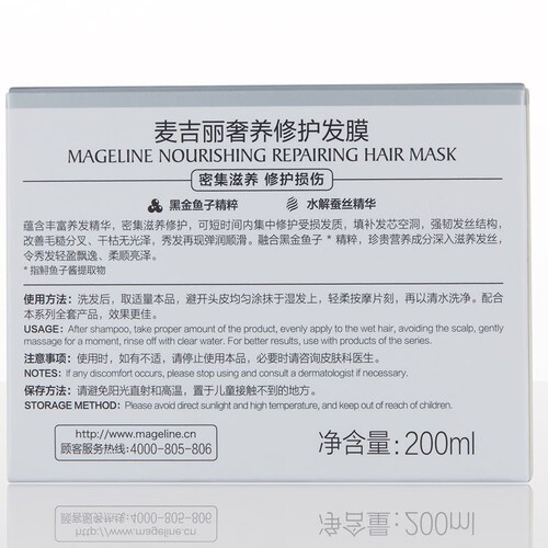 蕴含进口深海甄粹成分,强韧细软发丝,改善受损发质。添加多重补水成分,恢复秀发舒润光泽,远离开叉干枯现象。