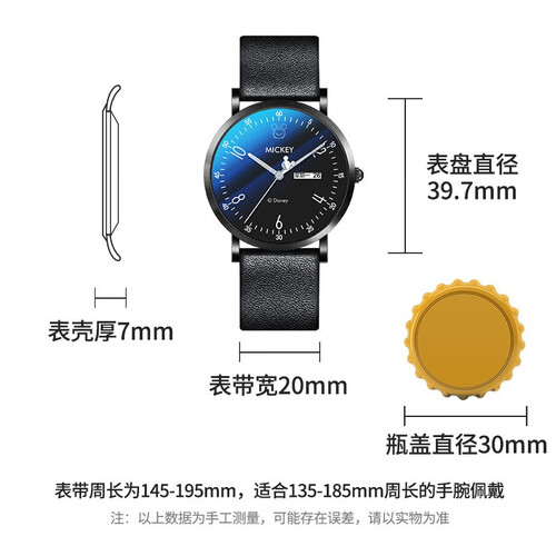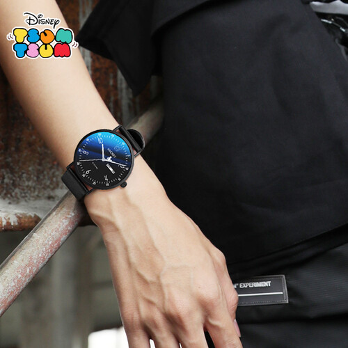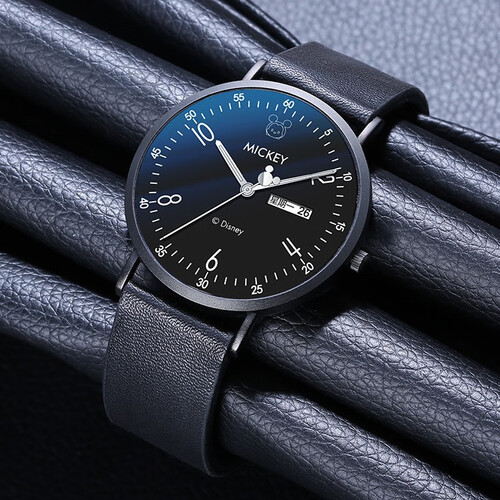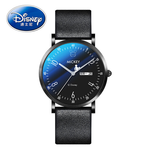 迪士尼 黑面皮带双日历手表