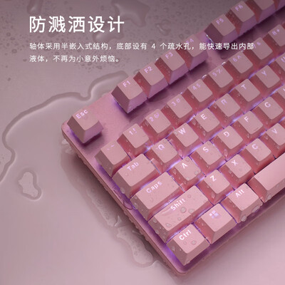 特别适合女生的一款键盘,粉嫩可爱的冰激凌色,满足女生的少女心。添加贴心的防泼溅设计,避免意外情况影响键盘性能。