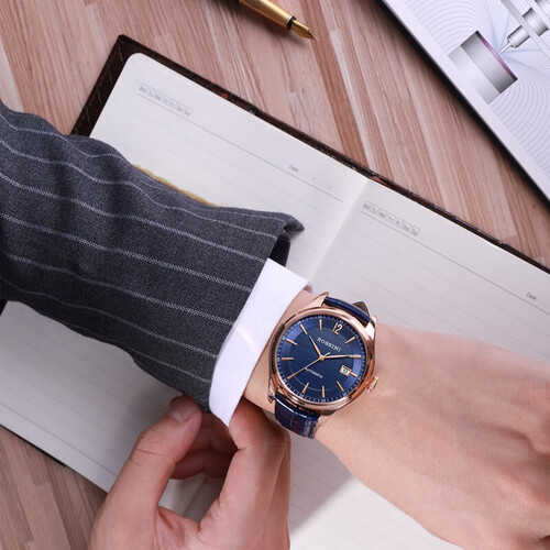 内置进口机械机芯,性能稳定,动力强悍,精准走时。采用剑型指针,搭配条形字钉,更显简约大气感。