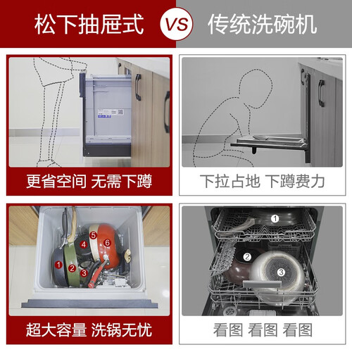 这款洗碗机无需改装即可嵌入橱柜,合理利用空间,做饭炒菜不费力。只需轻轻一按即可快速洗涤,老人孩子都会用。
