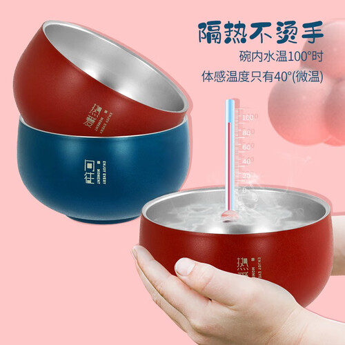 采用双层式设计,内部316不锈钢内胆,中间隔热保温层,外部是PU聚酯漆外层,有效隔热防烫;且光滑碗沿,不会伤着嘴部肌肤。