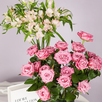 选用10朵缤纷浪漫的玫瑰+10枝娇俏水仙百合组合,花型饱满,色泽鲜嫩诱人,散发馥郁的芳香,调剂你的生活更显漫浪。