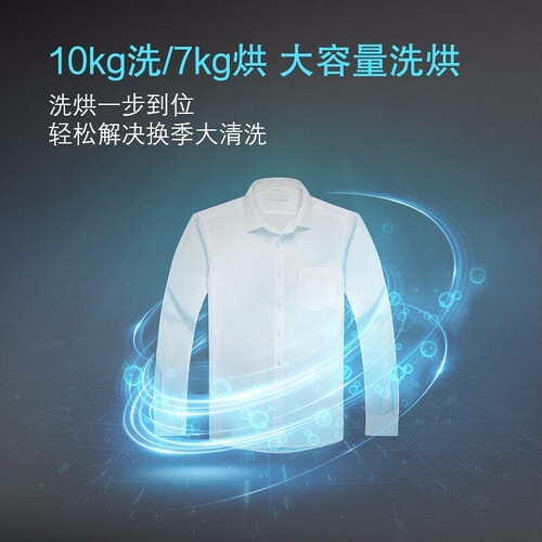 洗烘二合一,在有限的空间实现智能干衣和变频洗衣两大功能。BLDC劲效双驱,为随心洗护提供静音,节能的动力。