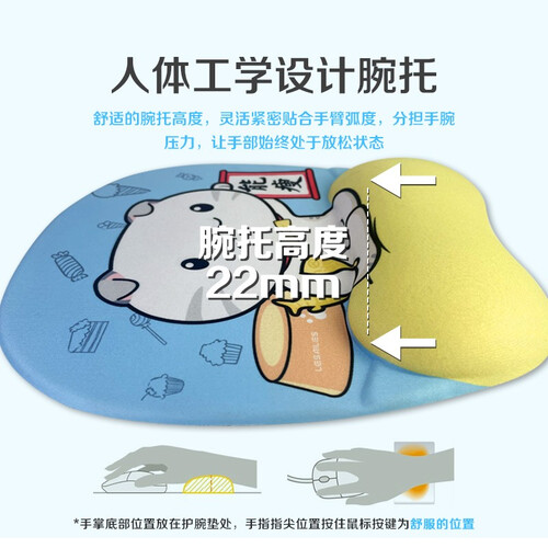 细腻光滑的面料,为你呈现舒适亲肤的触感,让你爱上这种触感。柔软的硅胶质感,呵护手腕肌肤,减少“鼠标手”的出现。