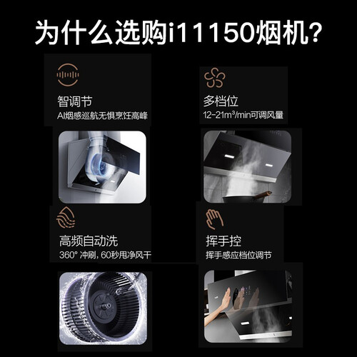 设有AI烟感巡航模式,自动匹配合适的风量风压,带来便捷智能的使用体验。拥有大静压,排烟顺畅,有效防止油烟倒灌。
