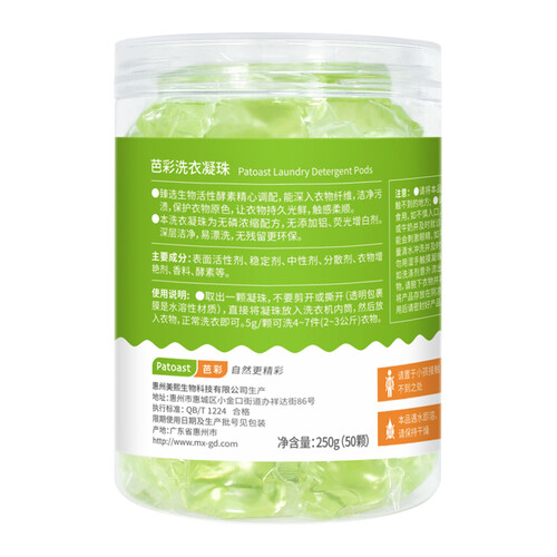 酵素洗衣凝珠,清洁衣物的同时还能起到呵护效果,使衣物水洗后柔软不干硬。无磷无害配方,环保卫生,使用更加安全放心。