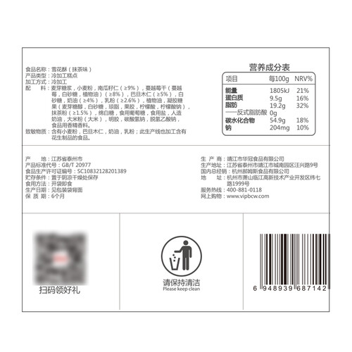 百草味 抹茶口味雪花酥