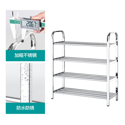 品质不锈钢材质,经过成熟工艺制作,经久耐用不生锈。四根横杆加强支撑,让摆放更稳固不晃动,收纳鞋子更安心。