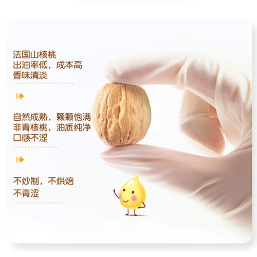 原料为纯核桃和纯亚麻籽,不含香精等食品添加剂,食用更放心。而且经过低温冷榨工艺处理,营养全面,不容易流失。