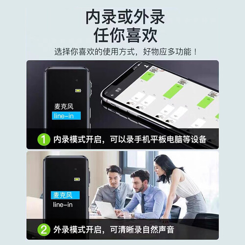 这款录音笔采用简约的纯黑色,轻薄美观又大气。看起来精致小巧,可以随身携带,音质清晰,适用于商务会议录音和学习使用。