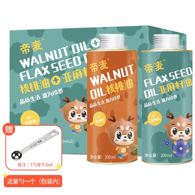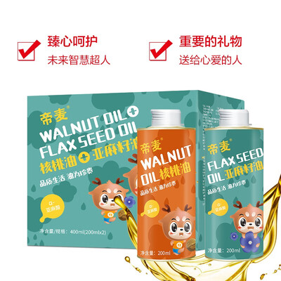 用核桃油于亚麻籽油搭配的组合,有着丰富的营养,因其均是经过物理压榨,原汁原味,且加工过程无添加,宝贝食用妈咪放心。