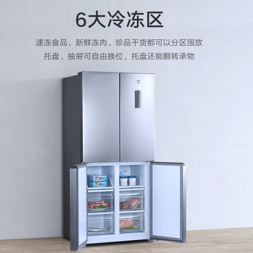 门板采用金属感拉丝设计,增添了时尚感的同时也不易磨花,使用寿命更长。冰箱体积更小,占地仅0.55㎡,小户型也放得下。