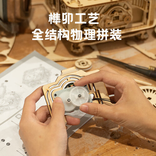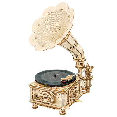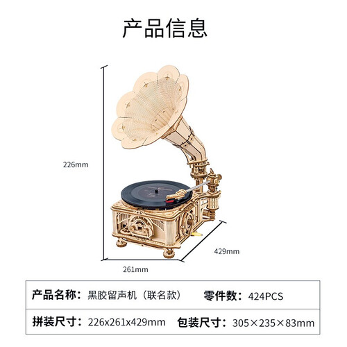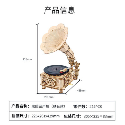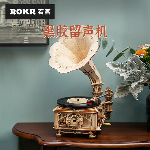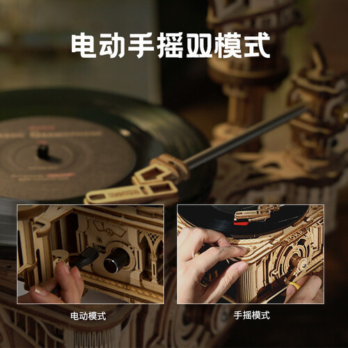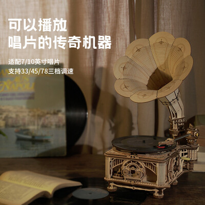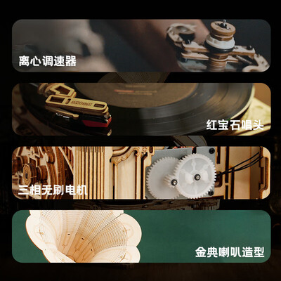 可以播放唱片的机器摆件,选用手动和电动双模式设计,内置拼装式离心调速器,利用复杂的机械传动体系,确保留声机转速均匀,稳定播放音乐。