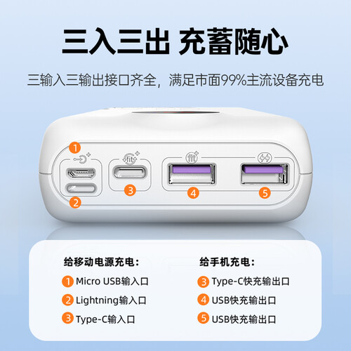 自带圆形LED数显屏,时刻掌握电压、电流、剩余电量和充电状态。接口齐全,满足多机型需求,充电蓄电一线搞定。三部同充,省时省力。