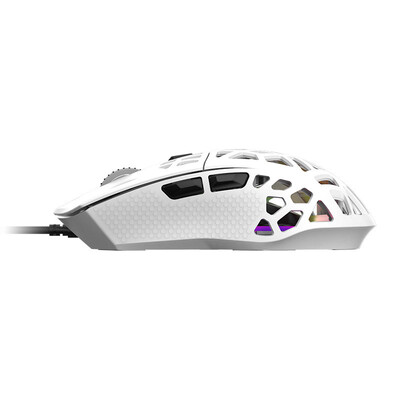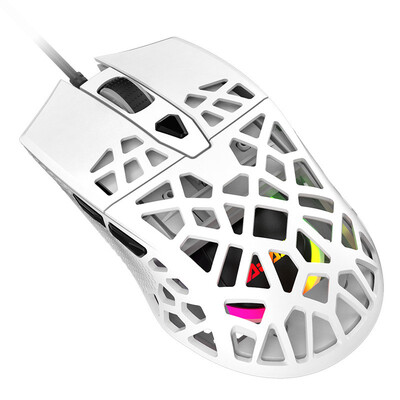 采用人体工学设计,使电竞鼠标的使用手感更舒适;选用镂空式外观,可以减轻电竞鼠标的重量;自定义背光灯,可自由变换灯效。