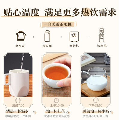 搭配360°旋转水龙头,随意切换角度,满足多角度接水需求。设有55°C保温功能,锁住热量,享受慵懒下午茶时光。