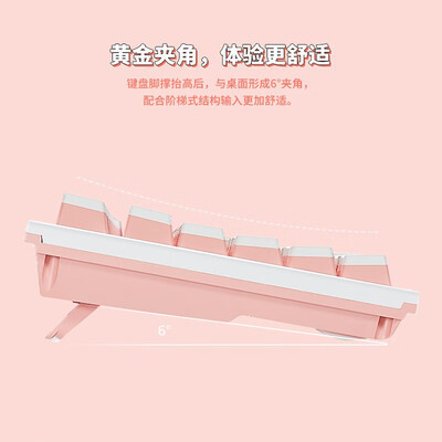 键帽采用PBT双色注塑制造,手感舒适,长久敲击也不易打油,清理也方便。采用两段脚撑支架设计,方便调节角度,键入更便捷。