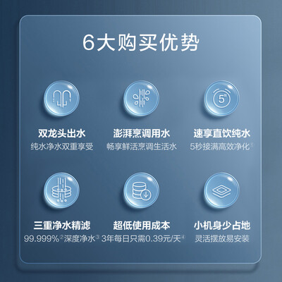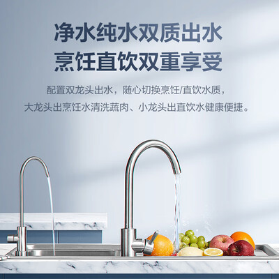 采用双膜双出水路,同时拥有直饮水与生活用水,更加方便。具有600G大通量,尽享畅快出水,减少等待时间。