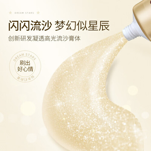 这款牙膏的膏体如金沙般绚丽闪烁,充满梦幻气息,令人一见倾心。采用名家调香设计,刷牙时心情愉悦。烟酰胺配方,亮白又固齿。