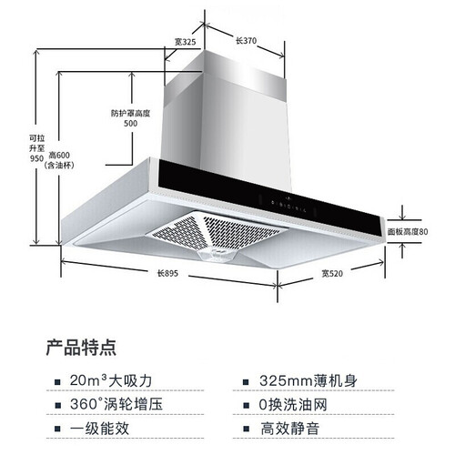拥有360Pa涡轮增压科技,油烟不倒灌,吸得进更能排得出,配备一级能效经济不减吸力,更有54dB低分贝,静享安然时光。