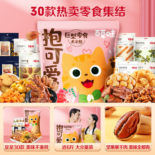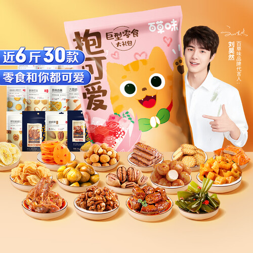 30袋色香味俱全的美食组合,带来全新美味体验。多种坚果、蜜饯、肉铺、豆干组合,咸甜酸辣,满足多种饮食需求。