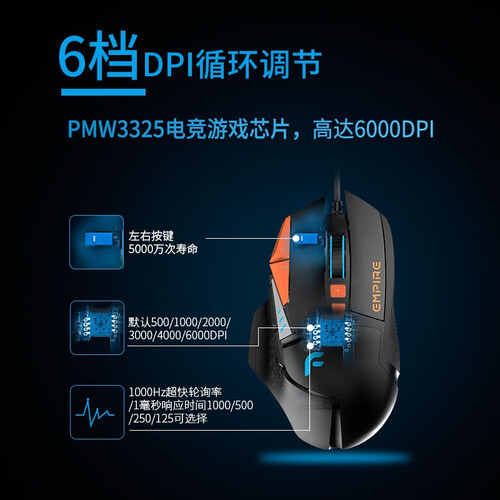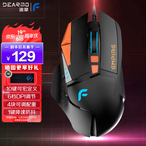 迪摩 F35橙黑有线游戏鼠标